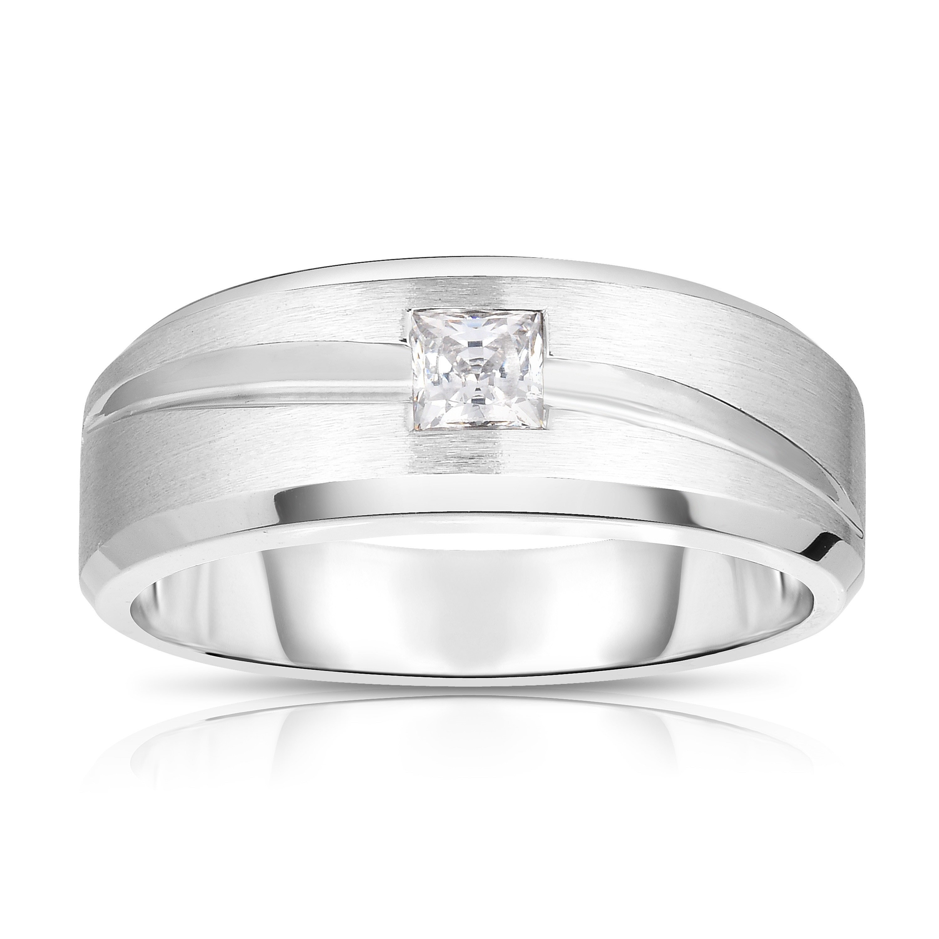 Men S Solitaire Diamond Ring 1 3 Ct Square Cut 10k White Gold Walmart Com